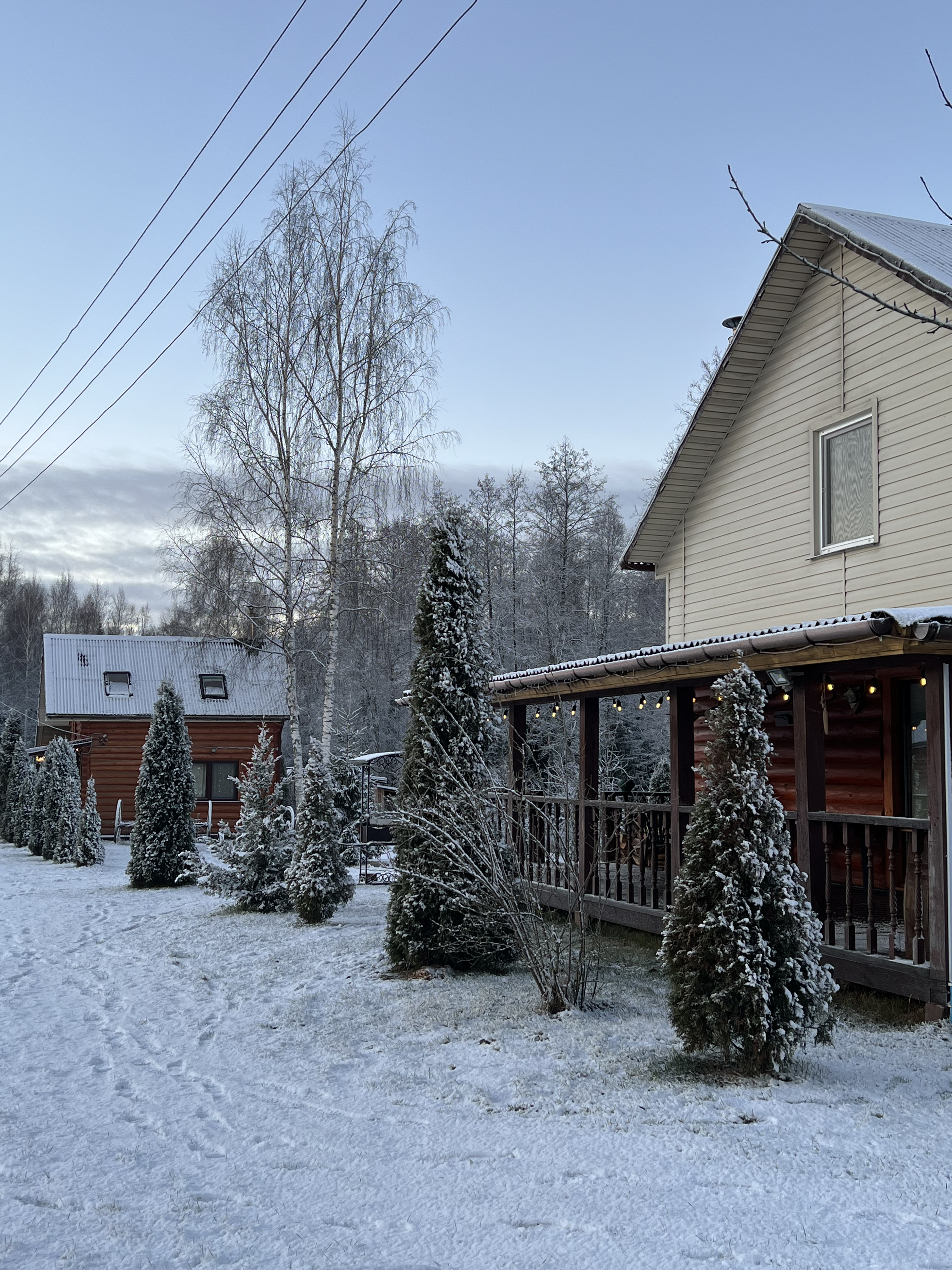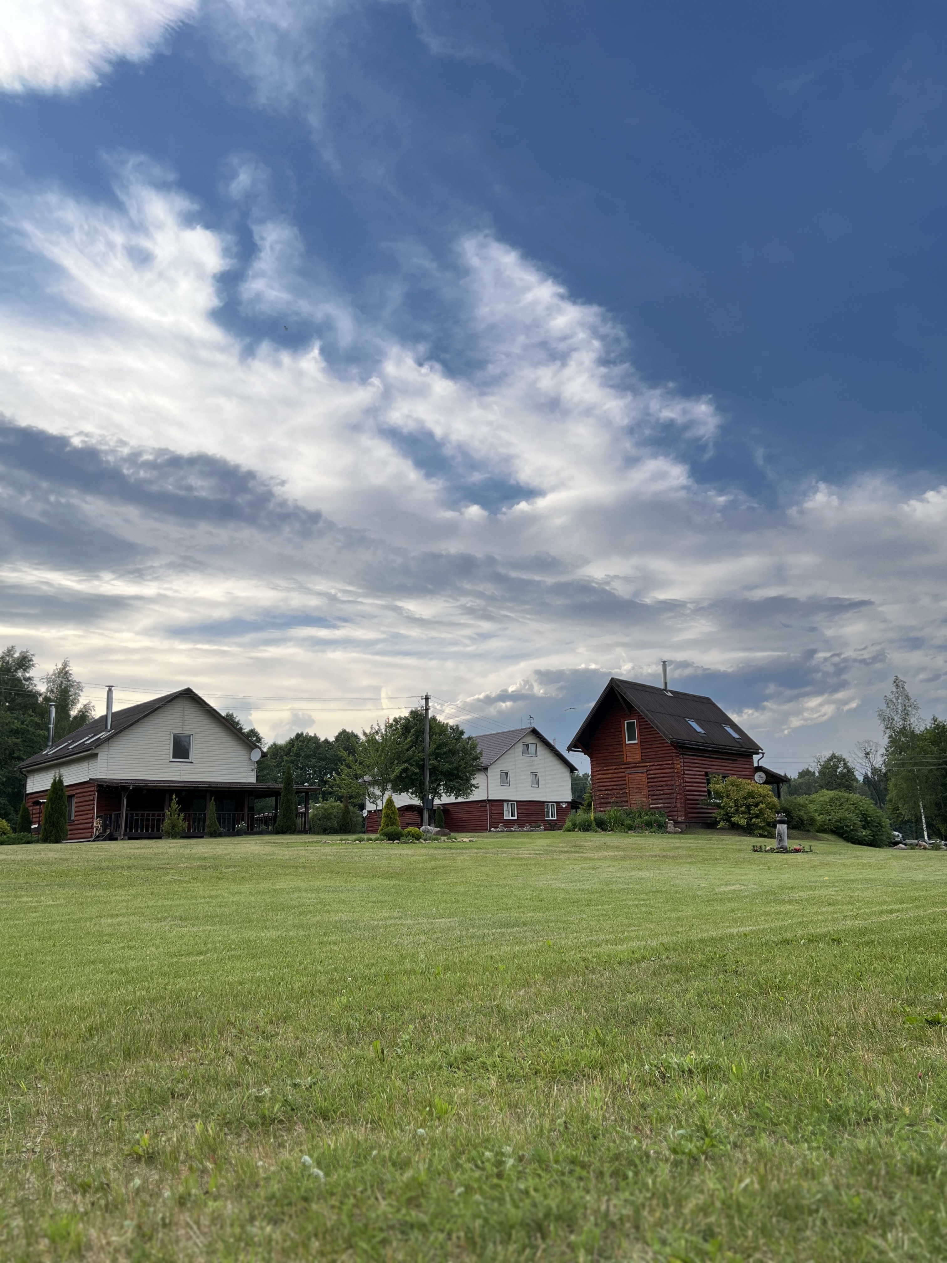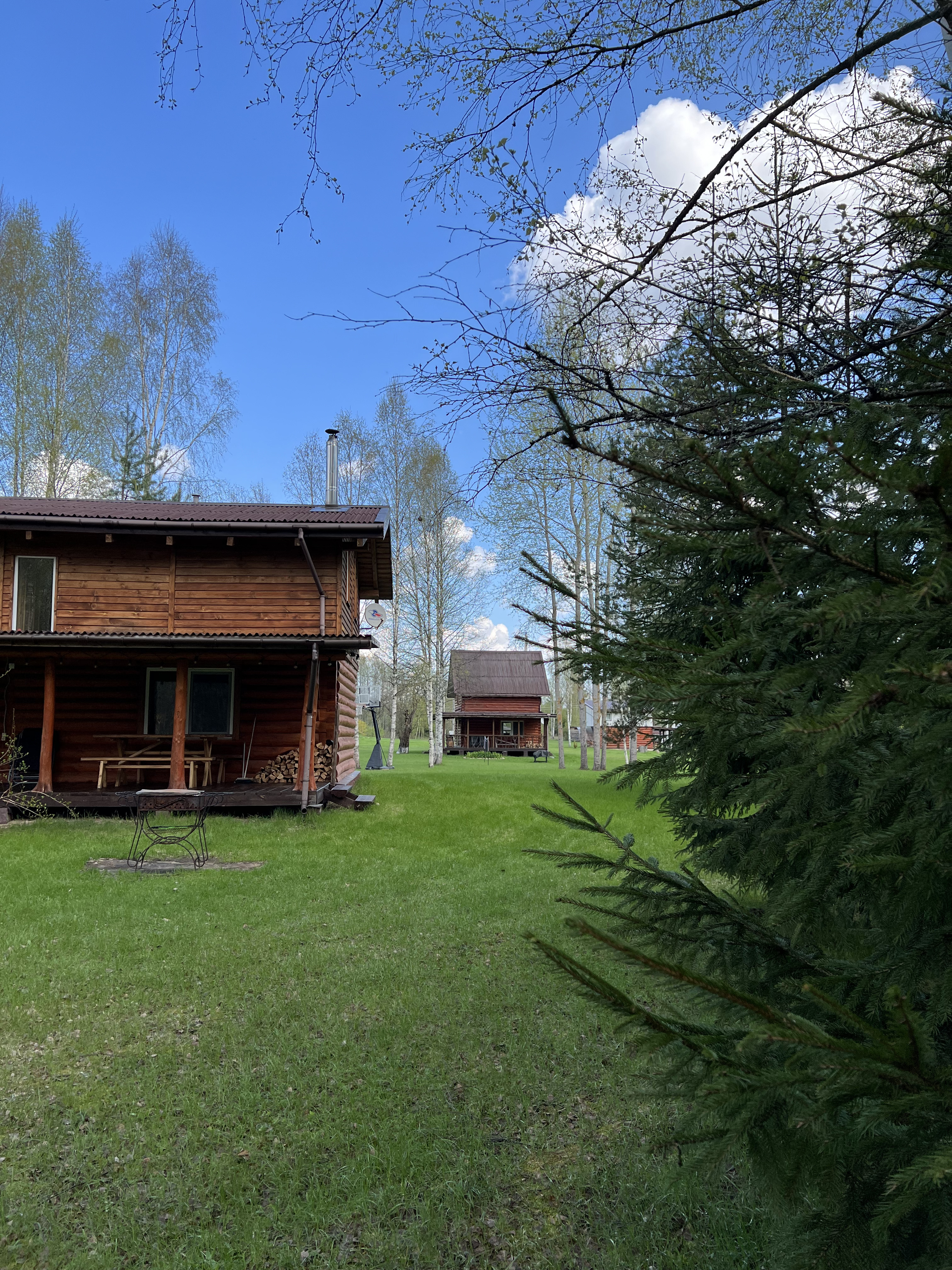 Природа в первозданном виде: Усадьба окружена густым смешанным лесом, где статные ели соседствуют с белоствольными березами. Мы сохранили этот естественный баланс, дополнив его мягким изумрудным газоном для Ваших прогулок босиком. Это место, где можно по-настоящему «заземлиться» и почувствовать ритм живой природы